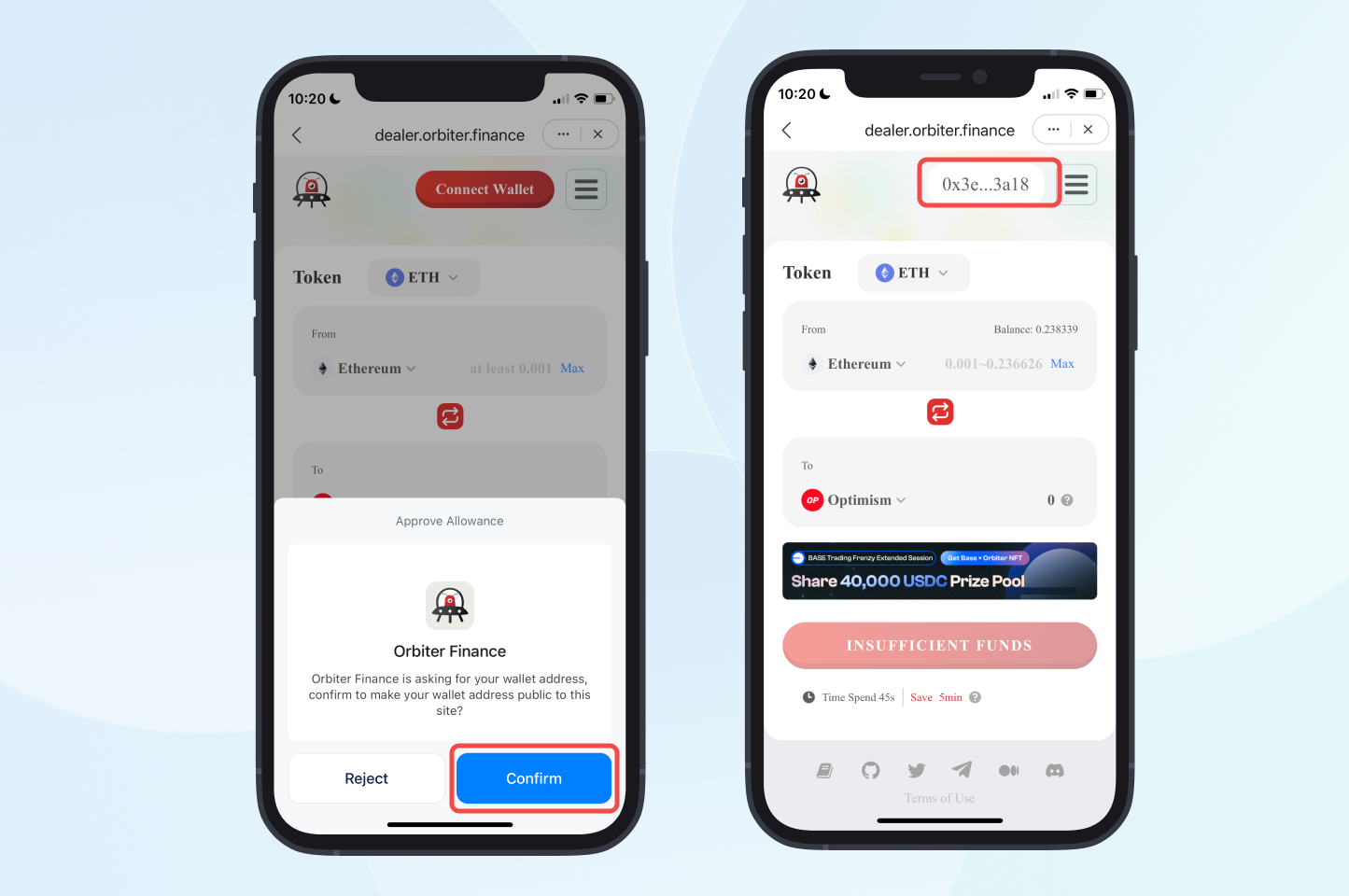 - Open the imKey wallet, click on "Bridge" find "Orbiter " and open the app.