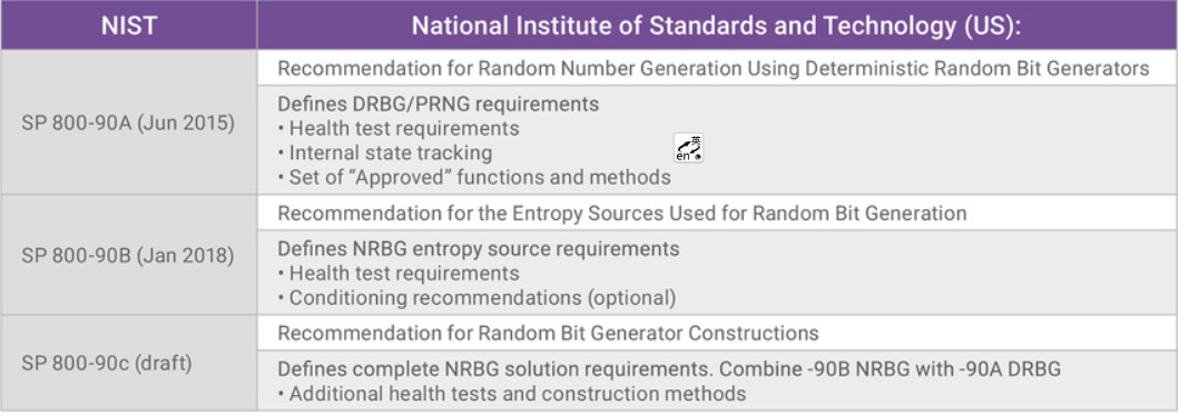 For example, NIST’s SP 800-90 A/B/C standards provide corresponding test suites; section 4.9.2 of (FIPS) 140-2 stipulates “continuous random number generator tests,” etc., and the testing standard is the SP 800-90B standard, as shown in the figure below.